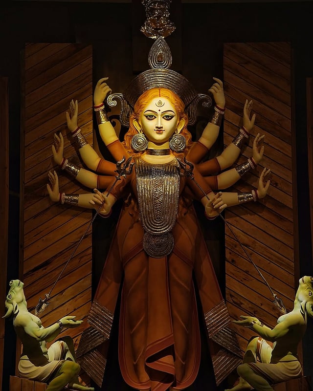 Located in the clay-idol heart of Kolkata, this pandal fuses traditional craftsmanship with architectural elegance. Visitors admire sculpted idols and intricate décor amid artist workshops.