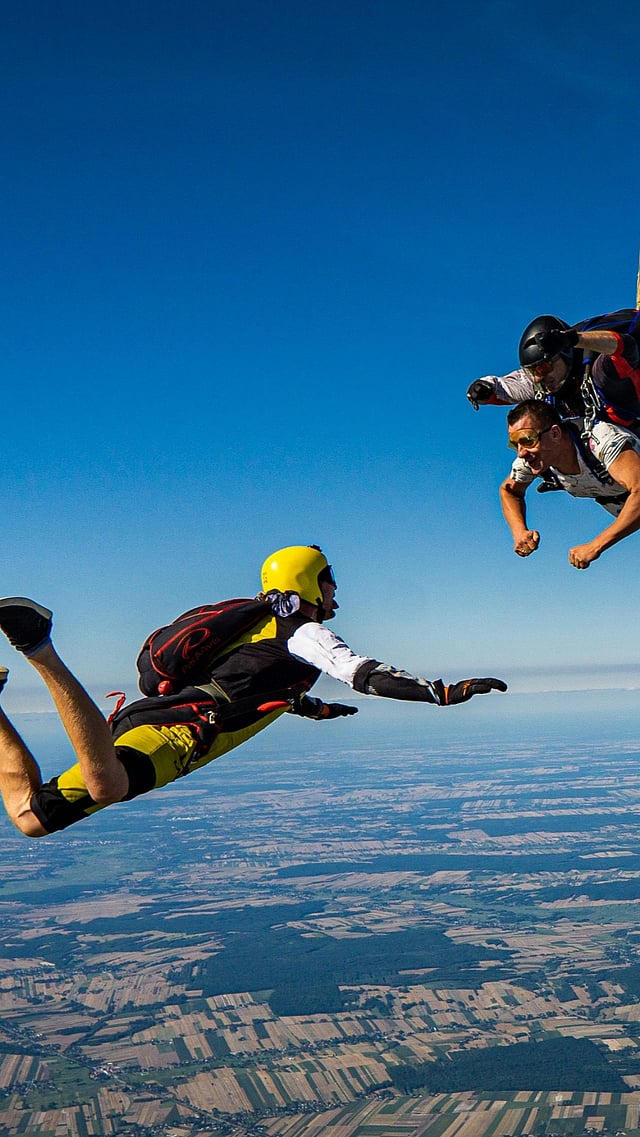 Moorea offers a postcard-perfect jump every time. As you fall, turquoise lagoons, coral reefs, and dramatic volcanic peaks stretch out beneath you.