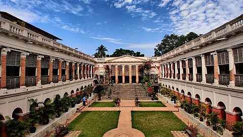 The historic Shobhabazar Rajbari offers a royal vibe, having hosted distinguished figures like Sir Robert Clive and Warren Hastings. Founded in the 1730s by Raja Naba Krishna Deb, one of old Kolkata’s prominent zamindars, the palatial building is adorned with arched pillars and spacious courtyards. The house features a large open courtyard at its centre with a clear view of the thakur dalan. A wedding here would include vintage settings such as chandeliers, and antique memorabilia. The Durga Puja at this rajbari is a centuries-old tradition in Kolkata, and a major attraction.