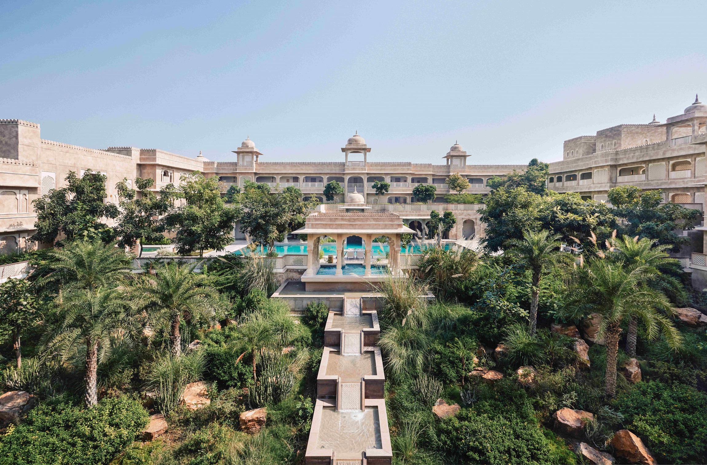 A beautiful 14th-century fort was sensitively converted into a Six Senses sanctuary of well-being. Originally owned by a Rajasthani royal family, it faces the Chauth ka Barwara Mandir temple. Conservation efforts such as rewilding the forest to the east with native species and reviving the Barwara lake have transformed this fort into a beacon of luxury, with 48 suites. Two heritage temples have been retained within the fort's walls, which are now replete with sustainable measures such as water conservation through an internal bottling plant, using locally grown organic produce and showcasing local handicrafts by employing artisans that stay in the vicinity.