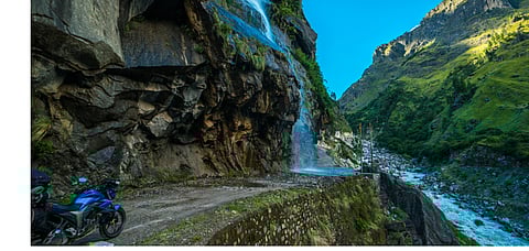 The 48-km journey from Askot to Dharchula is full of surprises. As one climbs from Jauljibi, the thickly forested road suddenly bursts into a wide barren mountain corridor. You become aware of the mighty River Kali that roars into existence below. And that here it&rsquos India and across the river, Nepal. The road from here snakes through mountains and waterfalls before gently descending to Balwakot. At this point you are at eye level with the Kali River. At the