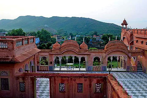 Patan Mahal is a palace-turned-heritage hotel. It is ideal for an idle, laidback holiday. Visitors can pluck fruit off the trees in the organic orchard, explore the modest Shiva temple and picturesque Gopaldwara house on the property or go for a swim. If the mahal is a period piece, with its arches and panelled doors, giant four-poster beds and coloured-glass windows, then the octagonal marble pool is quite simply an Orientalist fantasy. Elephant&rsquos heads spout water on the edges sweet-smelling damask roses and muraiya skirt the lawns.