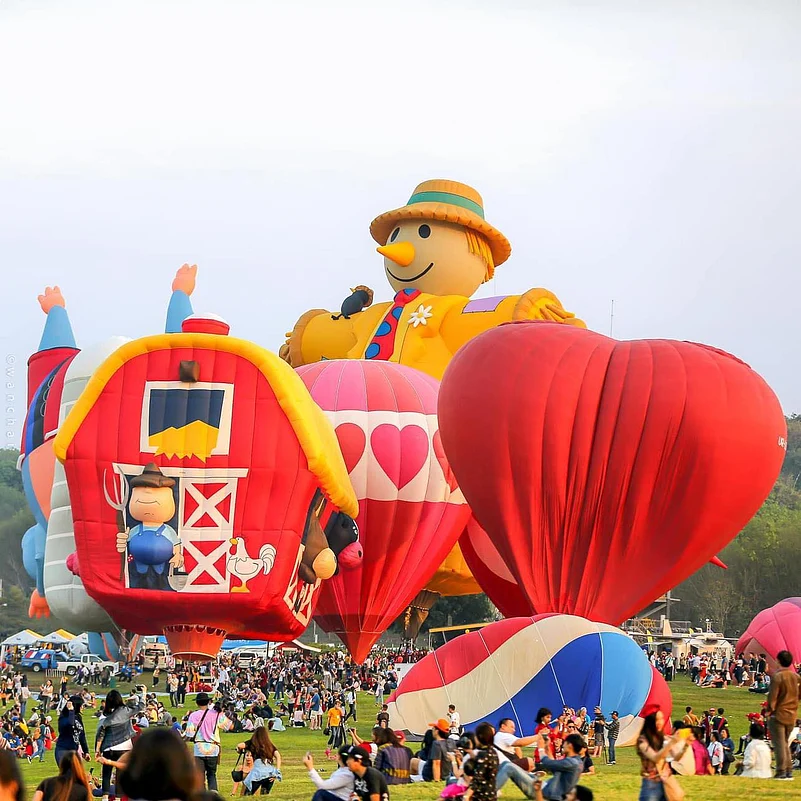 The Singha Park International Balloon Fiesta is considered one of the top adventure sports events in Thailand. This year, the event will have participants from 11 countries, including the United States of America, the United Kingdom, Latvia, France, Switzerland, Germany, Japan, Thailand, Spain, South Korea, and the Philippines. The four-day festival is packed with daily balloon competitions and the spectacular Balloon Magic Night Glow, a show created by dozens of balloons.