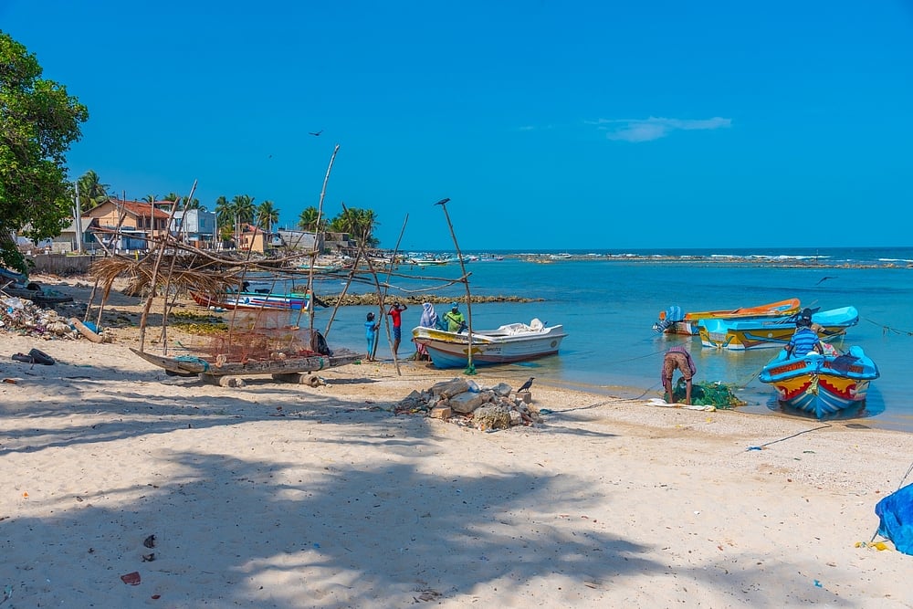 Point Pedro is located in the northernmost tip of Sri Lanka, facing the Bay of Bengal. The name comes from the Portuguese Punta das Pedras, which meaning Stony or Rocky Point. Once a trading harbour, the town is known as Paruthithurai (cotton port) in Tamil because it was famed for being a hub that sold cotton to South India. Also known as Sakkotai Cape, the sandy beach here is full of colourful fishermen's boats. There is a lighthouse located on the east side. A board on the edge of a reef with a Sri Lankan flag marks this place.