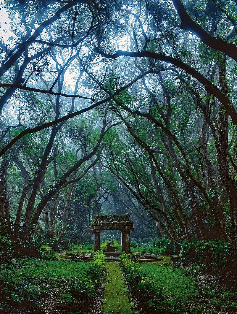 This Nandi sculpture, dating back over a millennium, is inside an ancient temple in Nandi Hills, Karnataka, and rests beside the waters of Amruth Sarovar