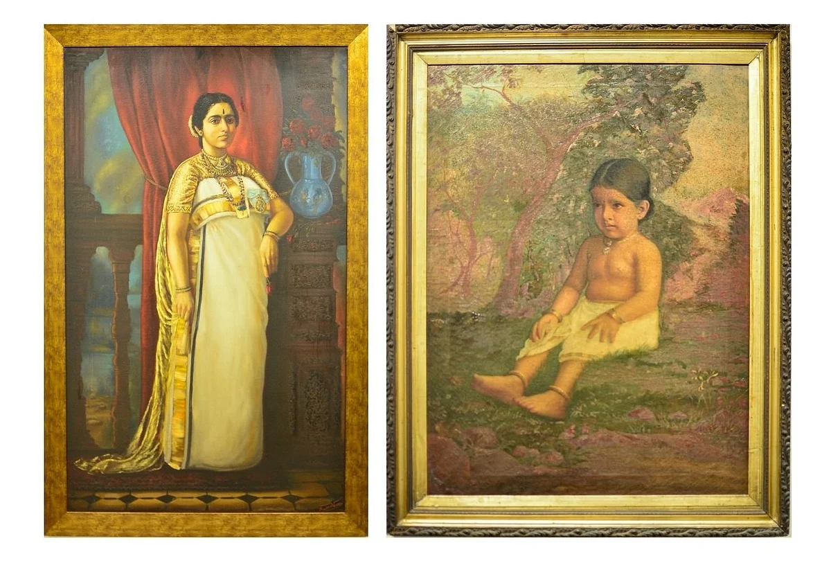 While the colour tones and style remain consistent with Raja Ravi Varma's other paintings, this one stands out for its simplicity. The child depicted (Sethu Lakshmi Bayi) retains a natural, innocent look, devoid of the elaborate jewellery and regal attire often associated with royalty. This departure from typical royal portraits captures a moment of simplicity before the child's adoption into the royal family, preserving a glimpse of her unadorned childhood.