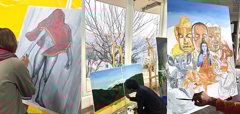Meanwhile, as I spoke with Anirudh Chari, the curator of Chitrashaala, he expressed, "Chitrashaala 2023 has brought together an extraordinary collection of artistic talent from across the world to create breathtaking works of art in one of the most awe-inspiring locations imaginable. The event is hosting 52 exceptional artists from India and abroad, selected for their exceptional skills, creative vision, and diverse practices. They are residing and working for a week in this magnificent estate situated in the picturesque Kumaon Hills. While some of these artists have participated in Chitrashaala before, others are experiencing for the first time the remarkable hospitality of jüSTa and all that it has to offer."