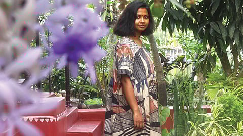 Inspired by natural motifs, textures, and geometrical forms, Haridra products are elaborately hand-painted and hand-dyed with natural colours, making each unique and distinct. "We follow the traditional Kalamkari technique of painting on fabrics," says Das. "But, instead of bamboo kalam, which is primarily used for fine and continuous lines, we use a brush." Das simultaneously works on her artwork and for her clothing label, Haridra. "I entirely do the art pieces by myself," she says. "In comparison, the production process of my wearable collections is time-consuming and labour-intensive. So, we have a few people working with us; most of them are women, and they mostly come from underprivileged families and do not necessarily have the required skills to do the work. We provide the necessary guidance and instructions at every stage to ensure the most important thing, the quality of our products."