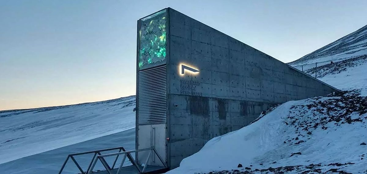 Svalbard Global Seed Vault Norwegian island of Spitsbergen- Stockpiling for doomsday We might already be covered. This seed vault, housing more than 250 million crop seeds placed by gene banks from all over the world, is located in the North Sea on the Norwegian island of Spitsbergen. The vault is specially built to keep the crops safe from natural calamities or explosions in an apocalypse-like situation. Only designated researchers with valid permits can visit this place.
