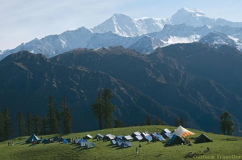 From Delhi, you can drive to Pantwari, trek eight kilometres to Nag Tibba, descend and go backall without missing a single day of work. You can even bring your kids as this is an easy trek. The initial ascent is through rocky terrain, but soon you are surrounded by oak and rhododendron forests. As you gain altitude, powder snow greets you in the winter in the summer, it is yellowing hillsides with deep green groves. Eventually, you arrive at the Nag Tibba base, where the nag devta (serpent god) temple is popular among locals. In fact, the peak itself is considered its home. Brace yourself for the last kilometreit is steep but rewarding. From the summit, called Jhandi, peaks of the Bandarpunch range, such as Srikanta and Kalanag, are visible.