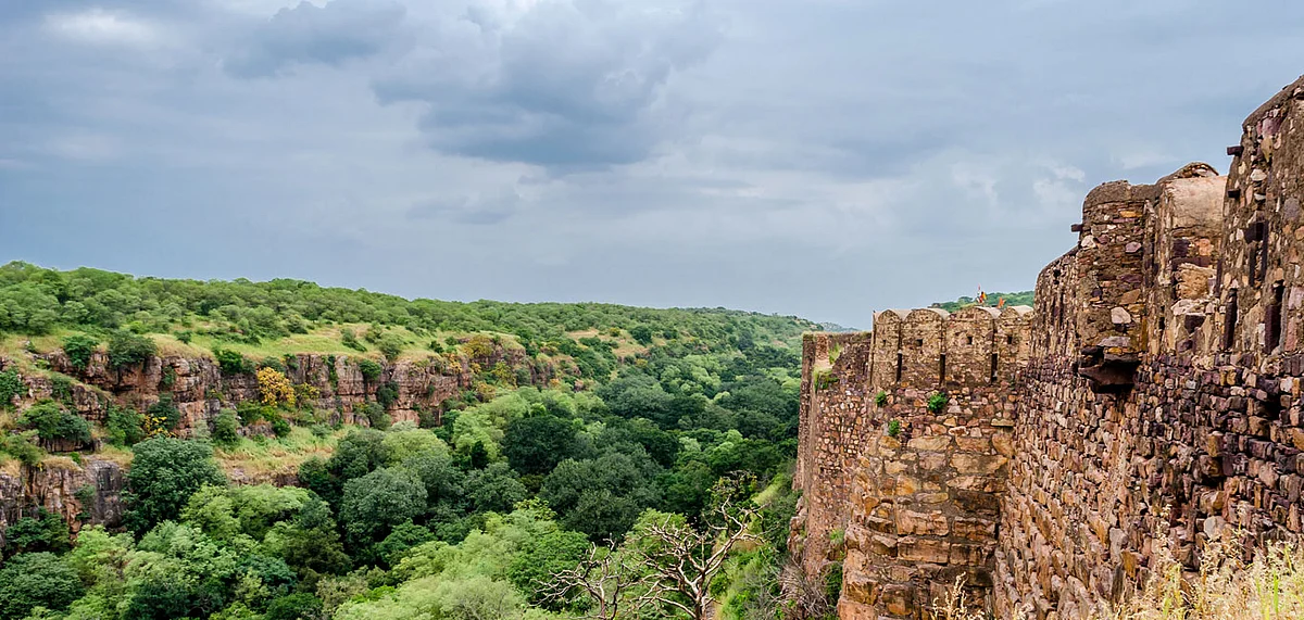 Nestled in Sawai Madhopur district of Southeastern Rajasthan lies the wildlife sanctuary known for its Bengal tigers, the Ranthambore National Park. Densely populated by the national animal of the country, its rich fauna means that hyenas, nilgais, langurs, and the Indian leopards also find home in this vast territory. Enclosed by the Banas River to the north and the Chambal River to its south, the national park is about 150km from Jaipur. Deriving its name from the monumental Ranthambore fortress that sits deep within, this wildlife destination is home to a diverse range of birds, reptiles, and tress.