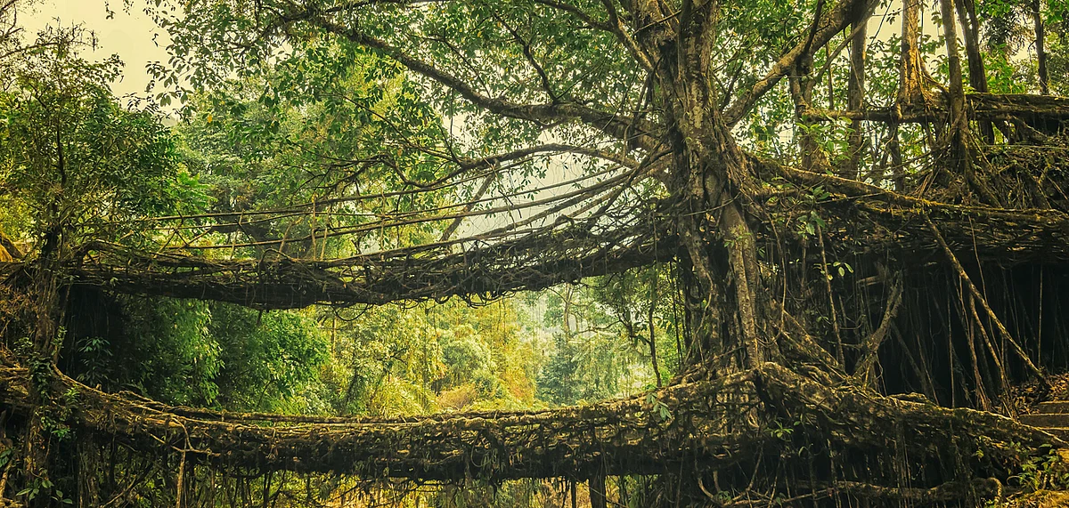 Easy paths seldom lead to magical destinations. This was true for the Living Roots bridges in Cherrapunji. I think I planned a trip to Meghalaya solely to witness these bridges. Even though the state is home to many such bridges, only a few are known to the world outside. Out of these, the Umshiang Double Decker is the most popular and a major tourist attraction. But getting here is no mean feat. Getting there means an arduous trek which includes climbing close to 6500 steps, both up and downhill. As if the steps alone weren&rsquot enough to make the trek hard, added to that were two very narrow bridges made of bamboo, iron cables and rods.
