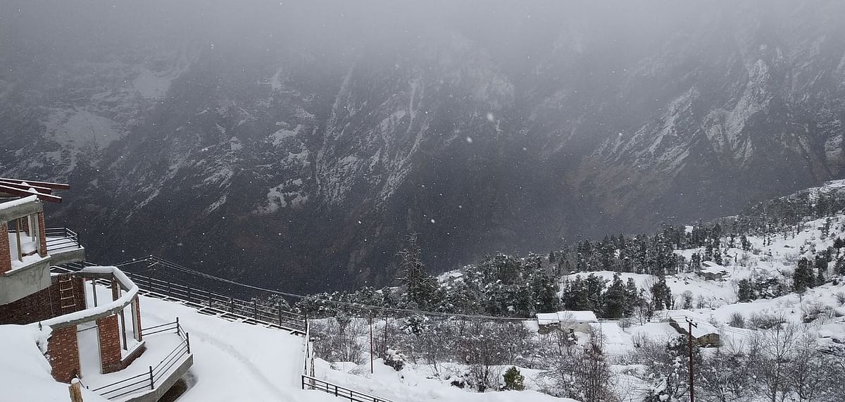 The climb up isn&rsquot a hard one, but be advised that without a professional guiding you throughout, it isn&rsquot something you would want to undertake on your own. We started at ten in the morning, coming back down a couple of hours after noon. The view that greets you at the top is one of serenity and absolute wonder. Surrounded by thick deodars and oaks all dusted over by the previous night&rsquos snowfall, you are in the lap of the Himalayan range and armed with a brilliant vantage point to take in the beauty of the adjoining peaks. I must have sat there for a good twenty minutes you can almost ignore the sub-zero temperatures when you&rsquore encircled by that degree of beauty. I wondered if the Dunagiri peak, visible to us directly from our spot, truly had some mythical healing herb growing in abundance. Our guide wholeheartedly agreed to my offhanded quip, and his earnestness made us all shut up and enjoy the magical moment. It was the downward trek that made me question my decision of ever agreeing to trek. We had to hurry back down before the snow hardened, and by the time we reached the base, it had started to snow.