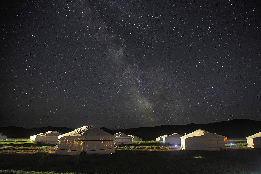The Milky Way seen over a ger camp in Mongolia[/caption]