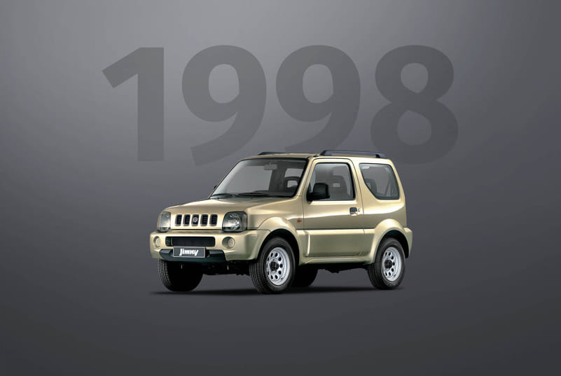 But for Jimny, inspiring two generations of adventurers wasn't enough. Jimny was still set on its journey to tackle the impossible. And that's how the 3rd generation of the car came to be in 1998. With an unwavering determination to brave any terrain, the Jimny was meticulously crafted to deliver the best. Its sleek aerodynamic design allowed the car to glide through the air with effortless grace, while its extended wheelbase provided a stable foundation for seamless manoeuvring. These pioneering innovations enabled Jimny to maintain its competitive edge, solidifying its position as a pinnacle of automotive ingenuity.