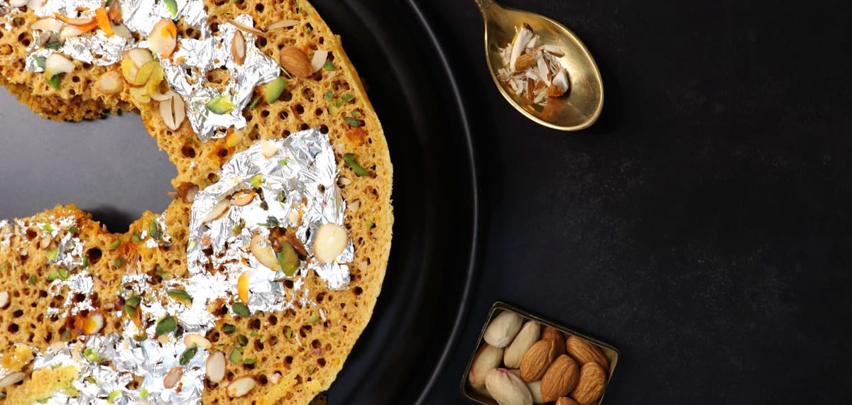 If you are in Rajasthan and you don&rsquot try ghevar then your trip has been wasted. The quintessential dessert of the state, this crispy honeycomb-like sweet deserves all the hype it garners. The crispy exterior is porous in texture which makes it perfect for heaping toppings. In this variation a hearty helping of creamy rabri is smeared on top of the ghevar which compliments the crunch of the dessert perfectly.