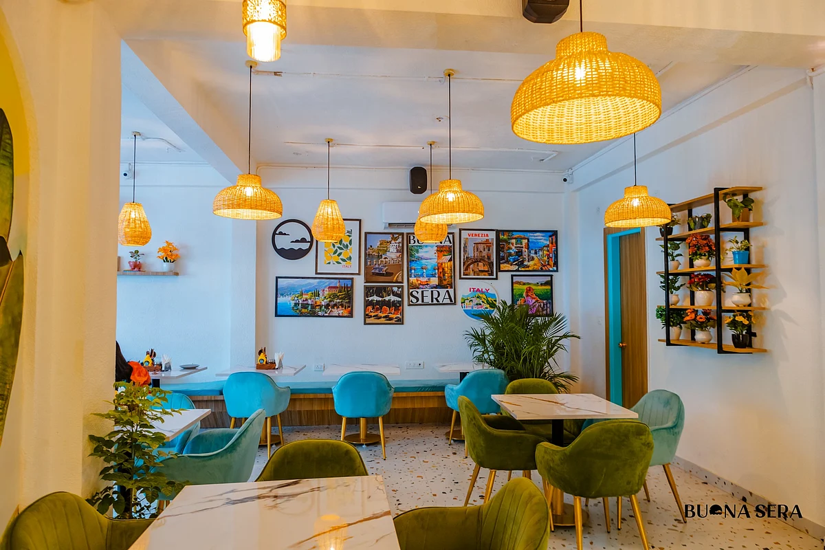 Buona Sera, meaning "Good Evening" in Italian, is the brainchild of two passionate food enthusiasts, Akshay Sharma and Jatin Khurana, who come from diverse backgrounds. This establishment, designed to resemble a countryside European café, boasts a delightful outdoor space and cosy indoor settings adorned in inviting turquoise and white tones. The warm and relaxed ambience makes it an ideal spot for leisurely gatherings and cherished moments. While the restaurant exudes a casual atmosphere, its commitment to exceptional food and service is unwavering. The chef has crafted a diverse multi-cuisine menu that caters to every palate.