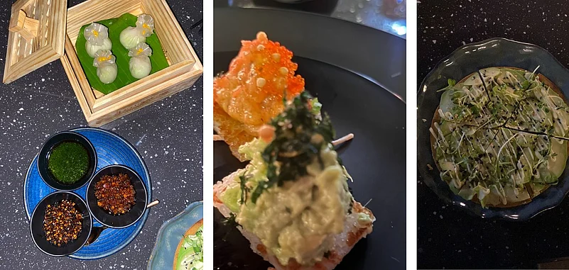 OT recently had the opportunity to experience the exclusively crafted menu of Kampai, which aims to entice Delhi-ites with its authentic Japanese cuisine. The Shiitake Truffle Soup was served first, and it stood out with its rich and earthy truffle flavour that blended perfectly with the tender shiitake mushrooms and fragrant thyme. Next, the Avocado Canapes were brought, a refreshing option with the creamy avocado complementing the spicy sriracha aioli and crispy sushi rice cake. The Edamame and Truffle Oil Dimsum was a must-try for Asian cuisine lovers, with the tender edamame and rich truffle oil-infused dumplings creating a delectable flavour. The Three Mushroom and Cheese Gyoza was a savoury and filling dish that blended perfectly with the creamy cheese.
