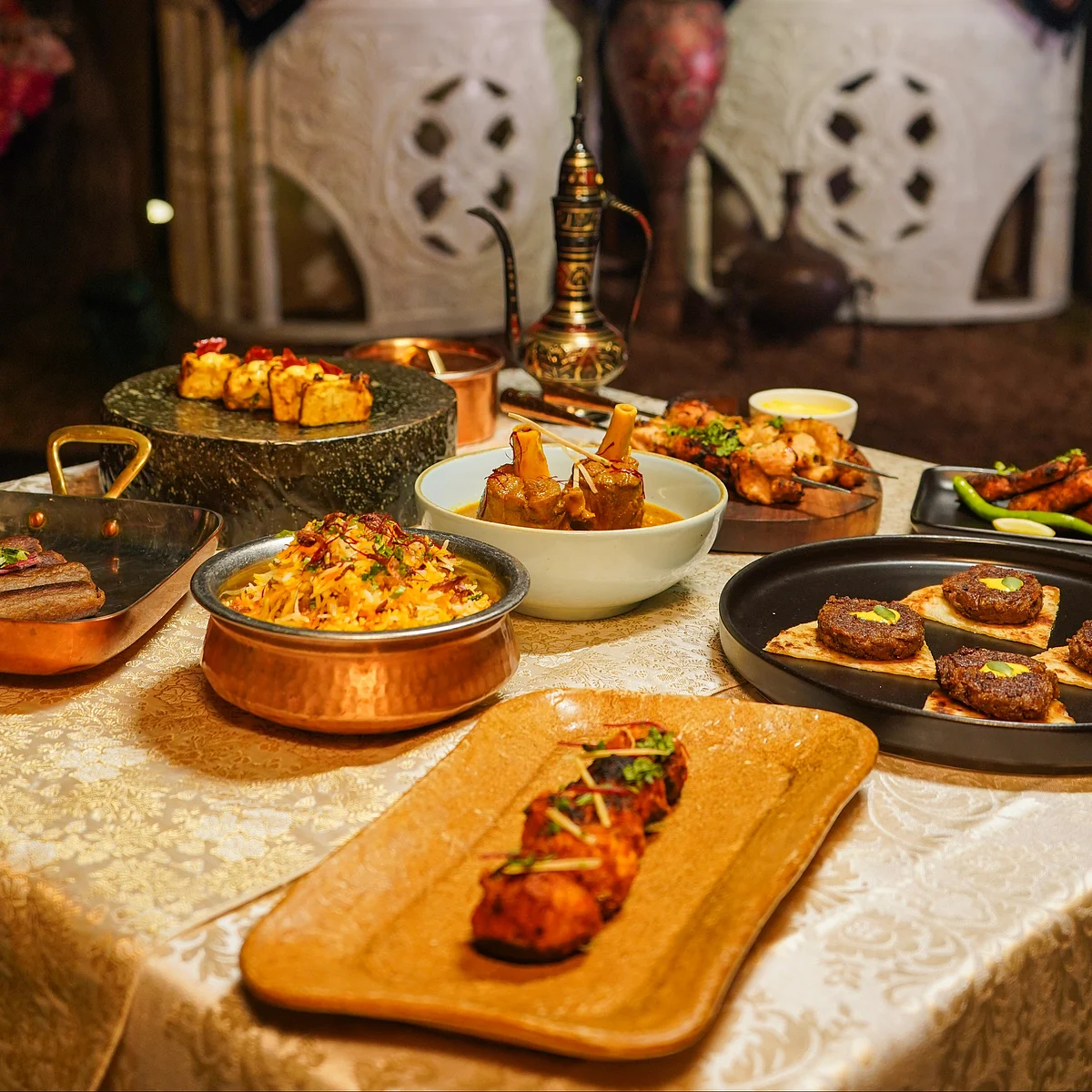 The Chef of the event has carefully curated a menu with three options falling under a single Awadhi umbrella. Each option promises a unique gastronomic experience. For the perusal of interested enthusiasts, Option 1 includes small plates such as the renowned galouti kebab and Murgh tikka hasano, along with soups like the Chaap shorba. The main course features Nehari gosht and Murgh Deegh biryani, accompanied by delectable bread choices like Gilafi kulcha. The sweet finale includes Double Roti Halwa, and the exquisite Rose chai and sheermal are perfect for refreshing your palate.