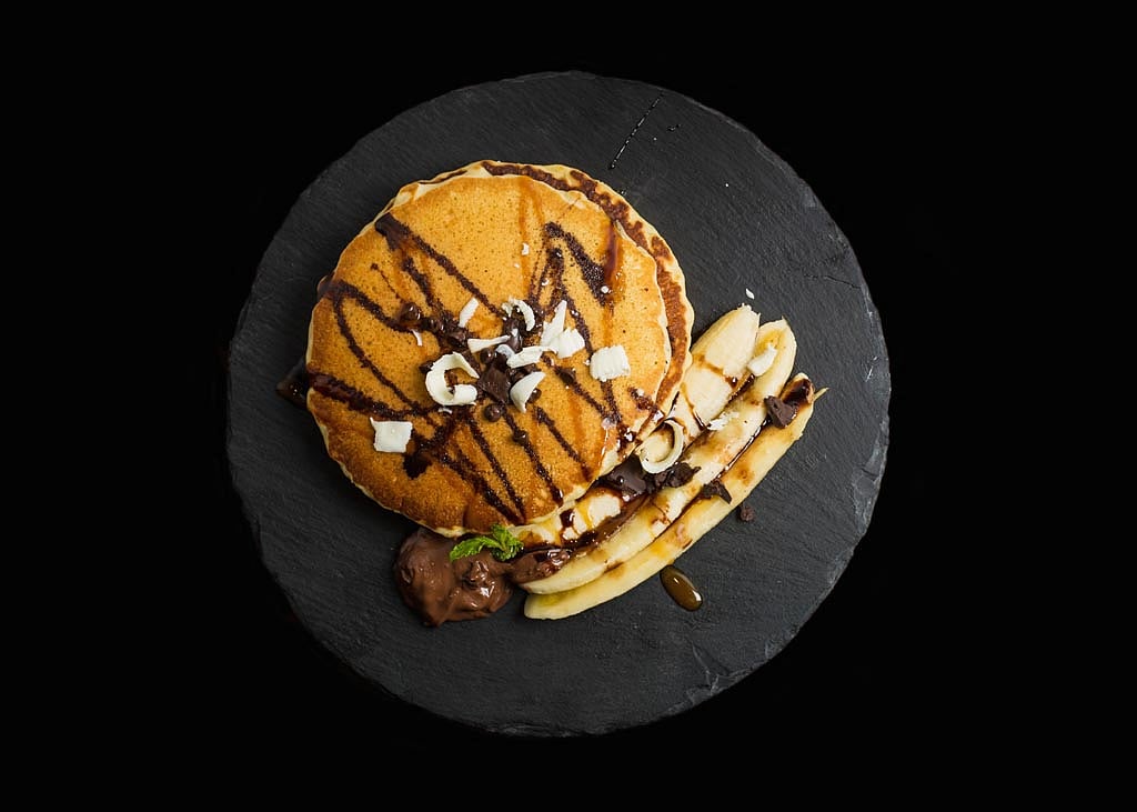 We ended our meal with fluffy, chocolate-chip pancakes indulgently topped with bananas, Nutella, caramel and chocolate sauce. And if you&rsquove had the filling meal we had, you wouldn&rsquot mind sharing the pile of pancakes between two people. Just this once, at least.