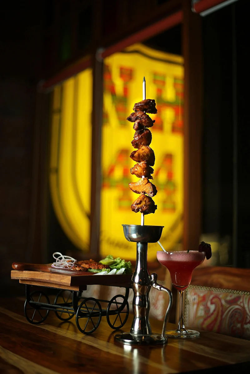 The menu, which is shaped like a truck takes us on a journey by itself, mapping out distinct cuisines with vivid descriptions and information. We start ed our meal by sampling dishes from Kashmir where rich spices like cardamom, cloves and saffron take the forefront. Nadur Monji is a dish with lightly-fried, crispy lotus stems that strike a balance between sweet and spicy, and we munch on these through our entire meal. Served with their refreshing paan cocktail was their signature Sword Kababs, of which both the vegetarian (Maharani) and non-vegetarian (Maharaja) versions were soft and fleshy. But, if we are looking for a winner among kababs, their chicken seekh kabab would take the mantle. A non-spicy alternative, this seekh kabab is served with chicken khurchan (shredded) and a layer of buttery bread.