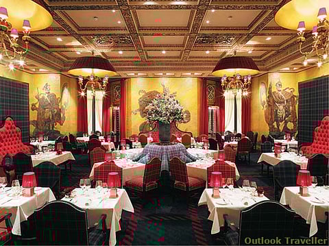 &ldquoWhy,&rdquo old Winston might have growled at a waiter, &ldquoAre these huge Scots fellows looking down at me Remove them They are curdling my brandy&rdquo Not being Churchill, I order my fresh grapefruit juice and quietly take in the floor-to-ceiling murals of kilted blokes posing on precarious mountainsides, every man-Duncan of them clearly gay, the faux-aged brown and ochre painting juxtaposed with bright red banquets and the crispest of white table-linen. Obviously, the designer was given the task of being simultaneously nostalgic and modern, and did his best to make a manful fist of redecorating the old cave. It has to be said the result achieves mixed success the chandeliers, the large vats full of (what looks like) fresh flowers, the bright gilt and plaster curlicues, all lift, while the murals and the almost complete absence of natural light weigh the space down. This might be a perfect joint for a dinner, or a long winter lunch while the light was even darker outside, but breakfast in spring