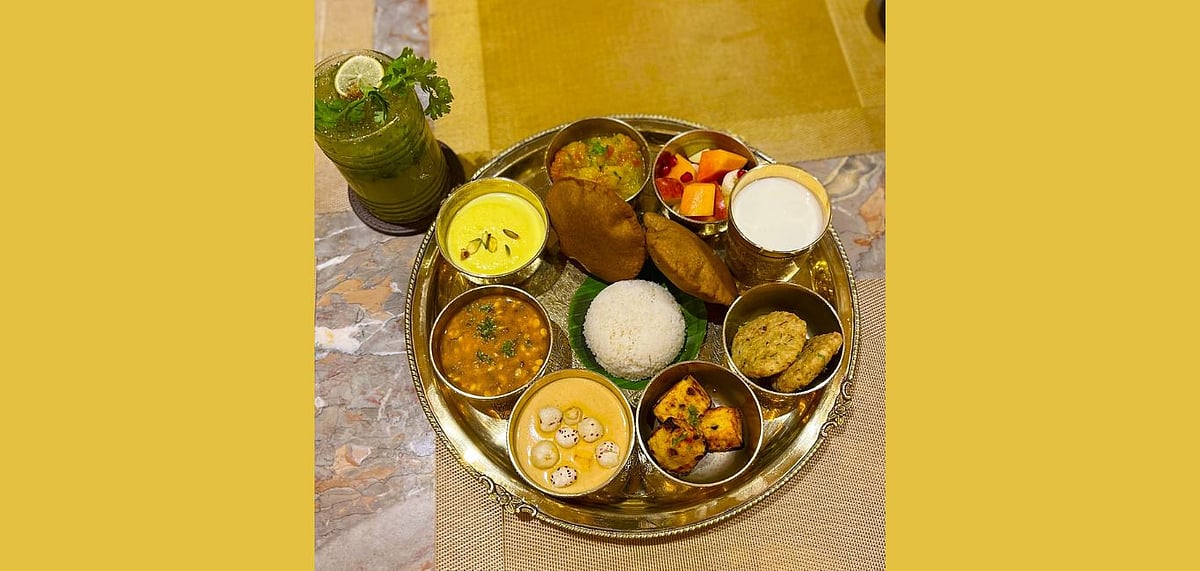 Imly&rsquos special thali includes dishes like Banana Chips Papdi Chaat, Paneer Makhani, Khatta Meetha Kaddu, Jeera Aloo, Sabudana Khichdi, and Samvat Pulav. If you have a sweet tooth, end your meal with Sabudana Kheer to satisfy your cravings.