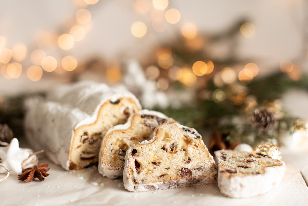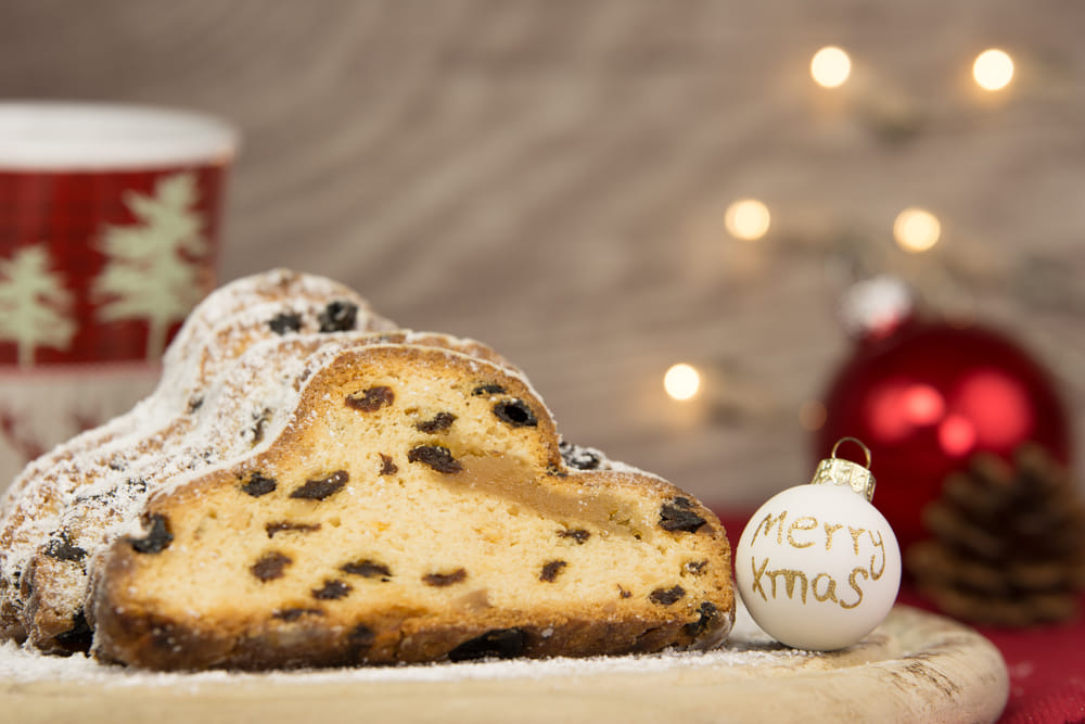 The hump of the stollen represents the hump of the camel that carried the gifts to Jesus Christ when he was born. The preparation of fruits and raisins alludes to jewels and gifts given to Jesus on Christmas.