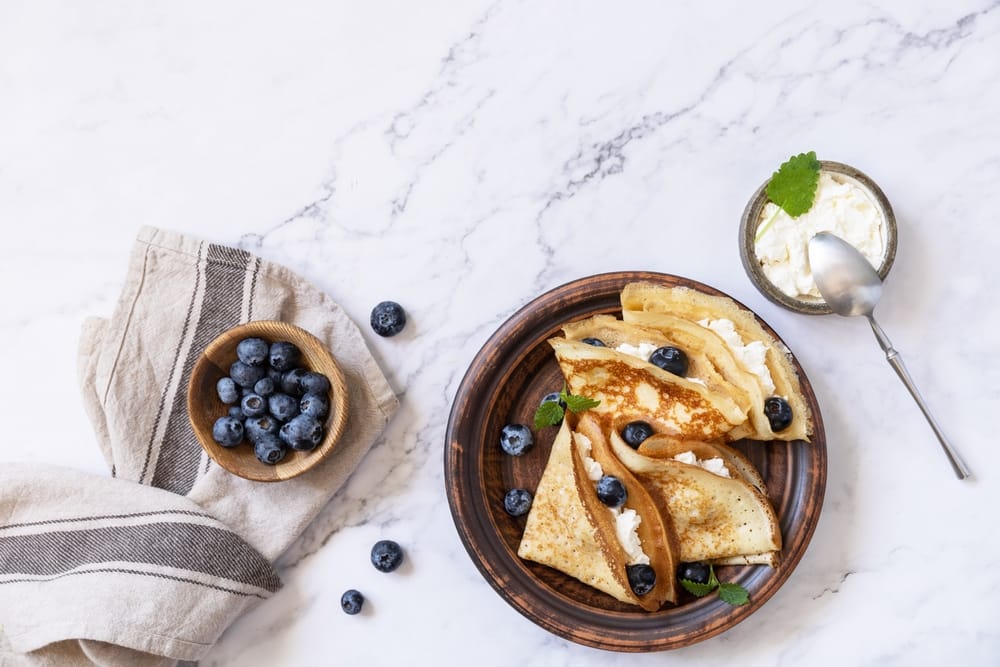 - Once the pancake is ready, garnish with your favorite topping (such as Strawberries, blueberries, honey, etc)