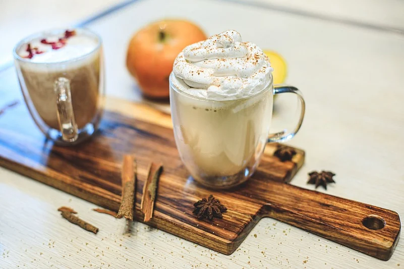 Make sure the pumpkin puree, pumpkin pie spice and freshly brewed coffee is ready beforehand. Heat the milk and pour pumpkin puree, pumpkin pie spice, vanilla, sugar in a saucepan over medium heat. Whisk the milk to blend everything and bring it to steaming hot. (It does not have to be boiled). Pour freshly brewed coffee, pumpkin milk in serving cups and fill up three quarters of the cups. Pipe on some whipped cream to garnish. Sprinkle either pumpkin pie spice or cinnamon and nutmeg powder on top.