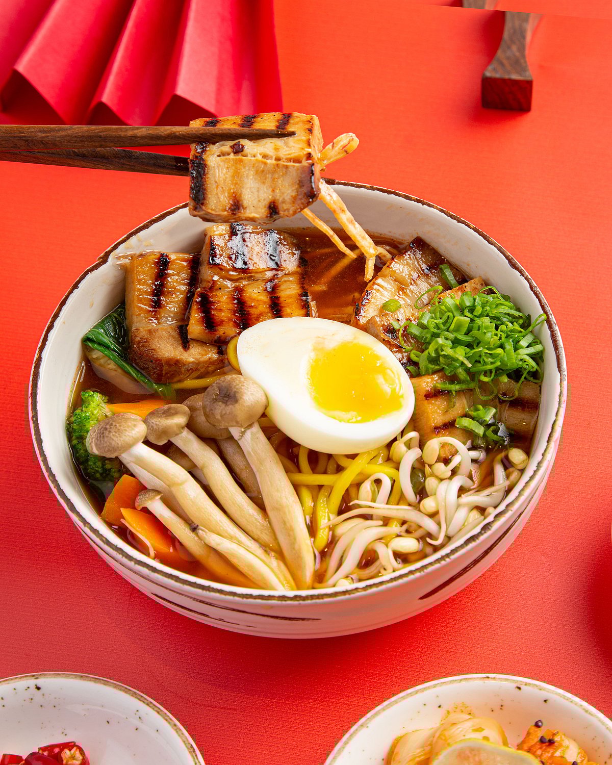A Vegetable Ramen Bowl WIth A Soy Ginger Broth