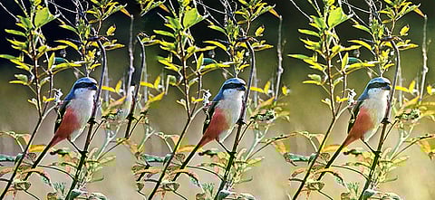 There is a small boat to take us downriver. Raju, the boatman, built it himself. He is from the nearby village of Madla and made a living as a labourer and fisherman. He has helped build the Sarai and now shows visitors around the river. As he rows, only the sound of the oars splashing in and out breaks the stillness. Time is suspended the winter sun&rsquos late afternoon light mirrors everything in the water even the wagtails, cormorants and open-bill storks seem to pose on rocky outcrops as if captured by their portraits in the water. We move past them, steering through the boulders towards the nest of the eagle owl we had been told about. We come across a solitary man floating on the inflated tube of a truck tyre he is laying a fishing net across the water. Raju asks him about the owls and he directs us to the spot. Sure enough, on a branch overhanging the river, we see a large bird, deep yellow eyes glaring at us, its remarkable cat-like ears cocked as it follows our progress. On a small island, we see its mate sitting on what the fisherman says is a clutch of five eggs. This one, too, glowers at us and we respectfully move off, content with our darshan of these ugly-endearing majesties. As the sun sets, hundreds of cormorants fly in formation to their roosts, flapping waves of black ribbons that disappear into the distance.