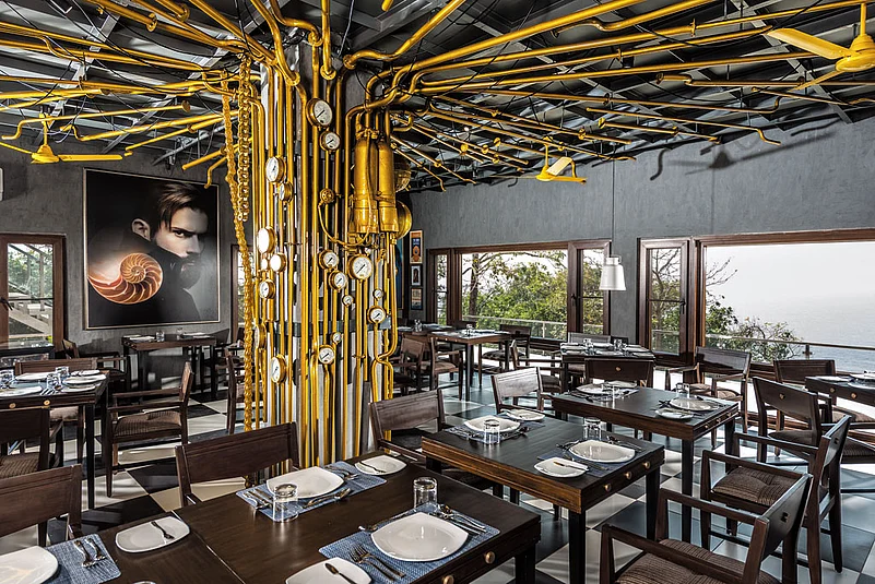 Jolly Roger&rsquos Club, the lounge bar, overlooked the sea access from Karwar. Occupying the highest spot on the island was the Captain Nemo&rsquos Deck restaurant, filled with portraits of diving legend Jean Jacques Cousteau.