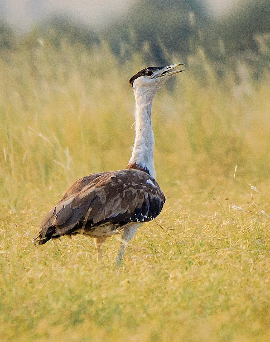 One thing is common for all grassland birds--their habitat is in constant threat. Be it agricultural or developing a land, open grasslands are the first to fall. And because of this reason, Bengal Floricans are now critically endangered. The species is native to Indian subcontinent, Cambodia and Vietnam. Less than a thousand of this species remain in the wild and the numbers are constantly in decline. In India they are found in the Terai regions of Assam, parts of Arunachal Pradesh and grasslands of Uttar Pradesh. It is extremely rare to find these birds because nowadays there are very limited grasslands but come March - August, which is their breeding season, there are chances to spot them.