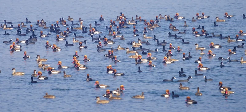 This year, the stunning Red-crested Pochard are seen in hundreds, along with Tufted ducks, Gadwalls, Eurasian Coots, Eurasian Wigeons, Northern Pintails, Green-winged Teal, Ruddy Shelducks, Ferruginous Ducks, Northern Shovelers, Greylag Goose and Bar-headed Goose amongst others. One also sees the endangered Indian Skimmer here, a species on every birder's wish list.