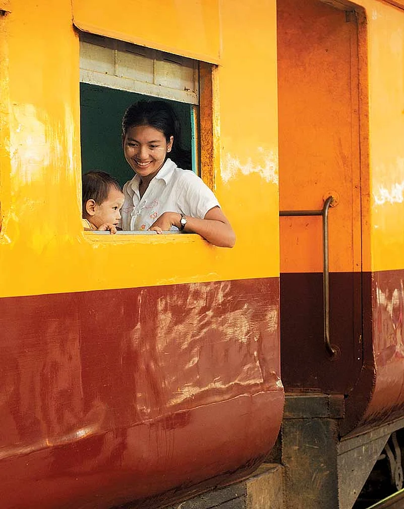Another highlight of Yangon was a journey round the city on the circular railway in the company of my fellow Minerva passengers, who were railway enthusiasts as well. The train travelled slowly, rocking precariously on tracks in need of maintenance. We passed through new Yangon with its tower blocks, and we stopped at stations which appeared to be in the middle of the countryside. These were the traditional Burmese villages which survive inside Yangon. When we came to a sizeable market, the train was invaded by men and women with huge sacks of vegetables. The travelling ticket examiner swooped on them, insisting they pay for their baggage. I noticed that the payments went straight into his pocket. No ticket was issued. Although the Burmese economy is said to have been wrecked by years of military rule, we didn&rsquot see any overt signs of poverty on our journey.