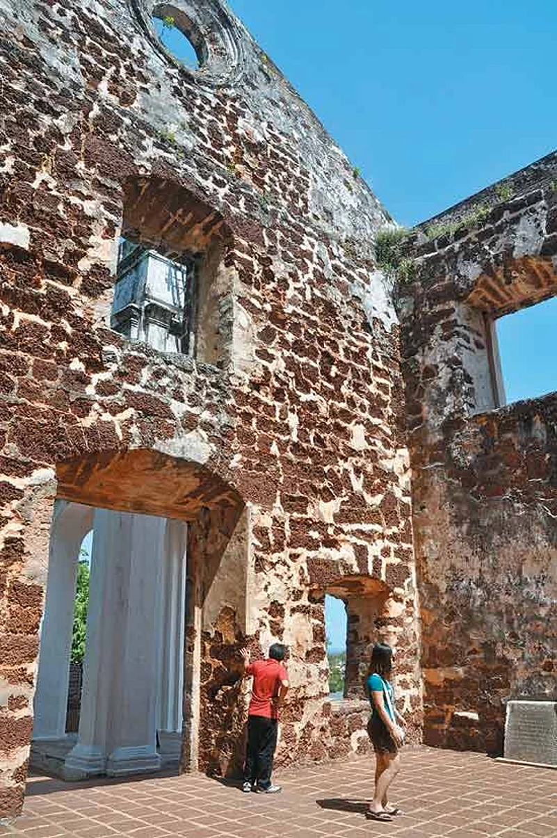 We sailed from Penang through the straits of Malacca, with the coastline in sight, until we came to the town of Malacca. Once there, we climbed up a steep hill to the ruined church of St. Paul. Inside we were shown what looked like just another hole in the ground but this was apparently the tomb where the body of St. Francis Xavier, who had died in China, lay for nine months before being taken to his final resting place in Goa. Known as the Apostle of the East, St. Francis had played a leading role in converting Indians to Christianity. Malacca was a major Dutch trading port in the 19th century, a rival to Penang which the British had established. Unfortunately the charming buildings of old Malacca which still form the centre of the town are dwarfed by the ugly high-rise buildings surrounding it.