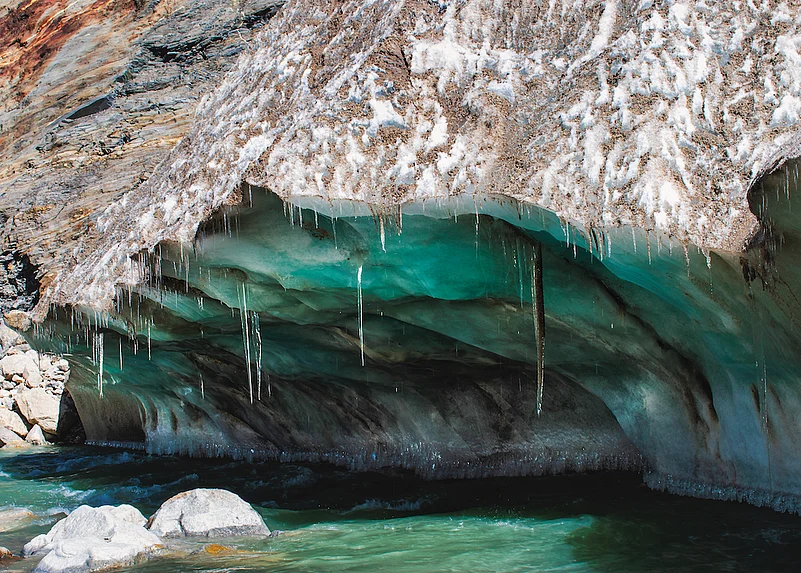 Mallika and I got our PCR tests and hopped on a flight from Delhi to Dehradun. A taxi took us up the long, spectacular route into the Himalayas, through Uttarkashi to Gangotri. The unending ridges were hypnotic, full of hill villages and terraced fields. We bought fresh local fruits and vegetables as snacks. By the time wereached Gangotri, darkness and cold had enveloped the land. Dawn revealed Gangotri as a stunning town squeezed between vertically forested ridges, above the glacial Bhagirathi river. We finalised our permits, hired local guide Rakesh Rao and hit the trail on our first hike to Gomukh.