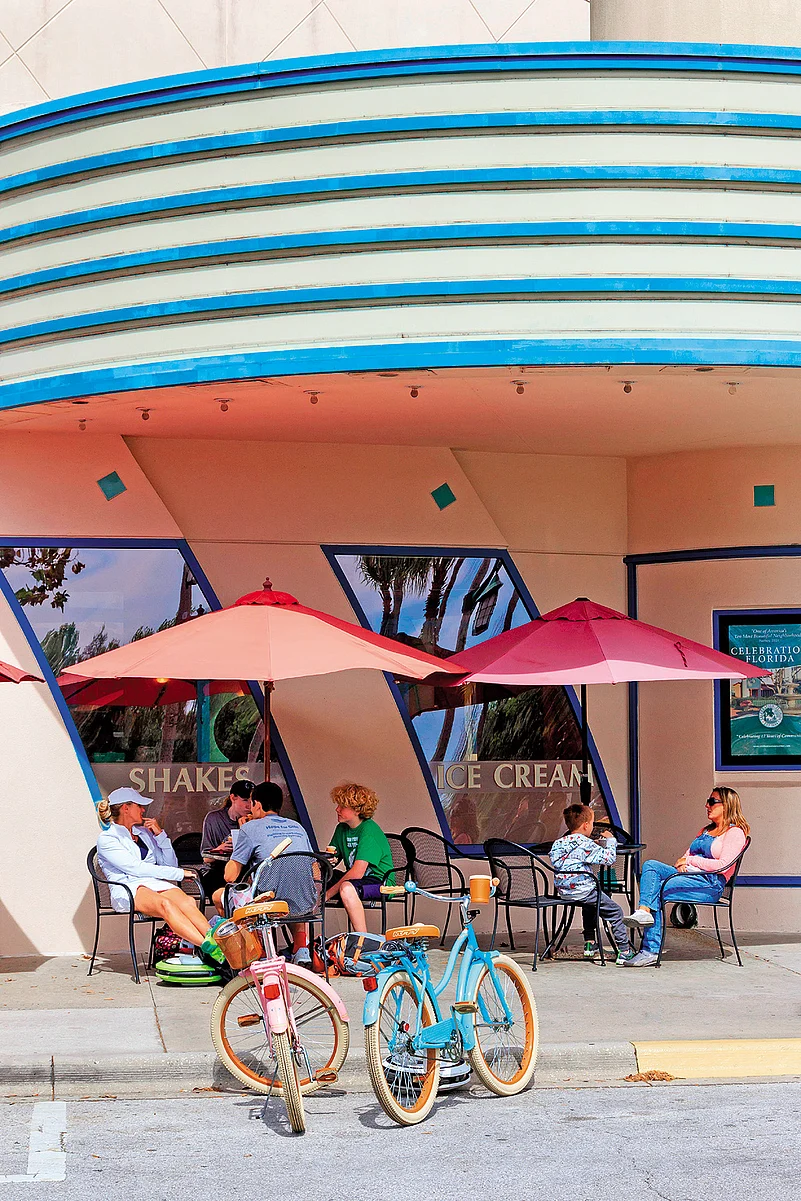Cycling is a good way to explore the picturesque model town of Celebration with its 1940s architecture. Rentals are available from Celebration Bike Rentals (tourcelebration.com). Scott will take you on a guided tour of the neighbourhood along scenic winding trails and waterfront pathwaysit is quite an easy and relaxed ride with no ups and downs and lasts about two hours. Scott is an entertaining guide and the bike trip can be an enjoyable antidote to the non-stop action at Disney and Universal.