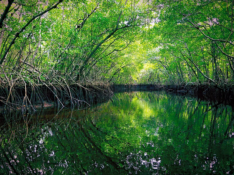Later that week, kayaking on Shingle Creek in Kissimmee is a very different experience. It is a small waterway that is generally considered to be the northernmost headwaters of the Everglades and drains into Lake Tohopekaliga. No sound breaks the silence in the thick forest other than our paddles swishing through the water while the tall cypress trees block out the sun and seem to press in on us. One could almost imagine Ponce de Leon, Spanish conquistador and the man who discovered Florida in March 1513, navigating his way along these shaded waterways in search of the Fountain of Youth. The water in the stream is clear and we can see right through to the bottom, where largemouth bass lurk, and pass a couple of Florida cooter turtles sunning themselves on submerged logs. I pull over for a closer look and the younger one slips off and into the water but the big fellow stays in place, still as a green-and-black striped rock, almost within touching distance.