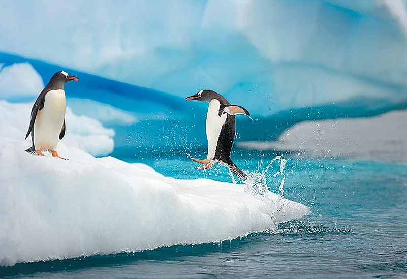 The colonies of penguins were especially enchanting. They would climb to the very top of their floating island habitat, then ski down the slopes to plunge into the freezing water, where they swam fast and furious beneath the surface, or leapt out of the water like dolphins, looking for fish. The seals, however, had already feasted, and they just lazed about in the dazzling sunshine, their stomachs full from their catch as they slept the day away, drifting on their private ice islands.