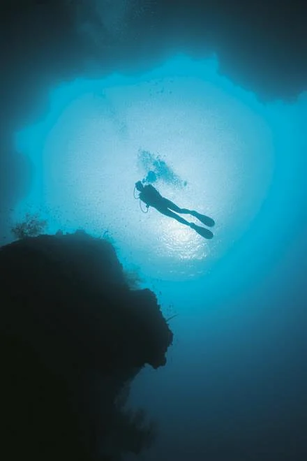 Upon doing so, my immediate observation was that there was nothing beneath me Recreational divers in clear tropical waters are accustomed to checking the reef from the surface to ensure a suitable entry point for the dive. All I saw as I gazed down through the clear water was an unnerving infinity of blue. With my face in the water I turned towards Barren, just as one of my companions whispered, &ldquoLook at the wall&rdquo And there it was. The black sides of the pinnacle fell into nothingness through waters that changed from light blue at the surface to an inky indigo that swallowed all detail of the island&rsquos sheer sides.