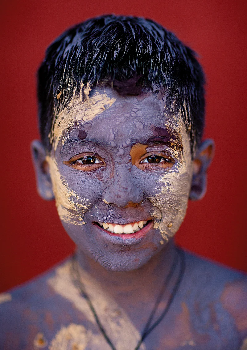 A smiling boy at a cultural festival[/caption]