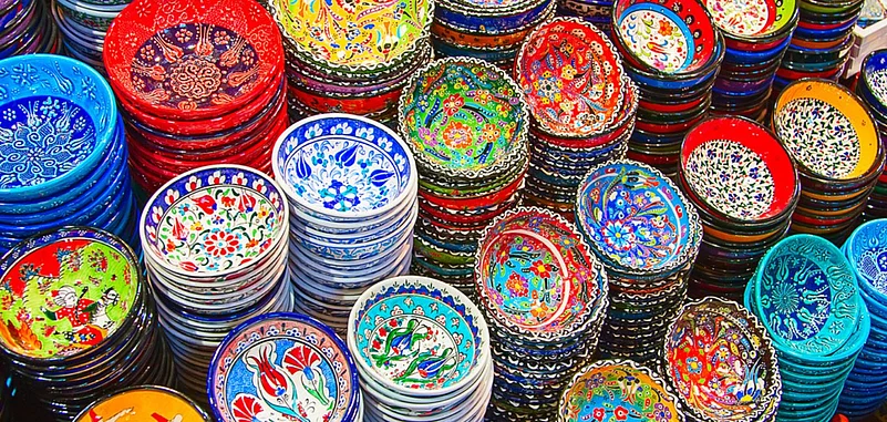 One may discover a wide variety of goods at the ancient Grand Bazaar, which currently has around 2,500 businesses. These products range from carpets to purses, textiles to gold and silver jewellery, and tiles to antiques. There are over 1,200 enterprises in the area known as han (inn), home to artisans specialising in the Bazaar's crafts.