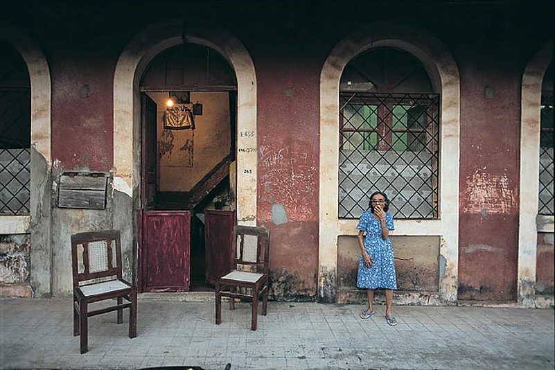 This abandoning of history and heritage is puzzling in an area marked as a conservation zone. The municipality prevents any construction beyond repair. So destitute houses and establishments, stung by poverty, litigation, obstinate tenants who continue to pay less than one hundred rupees a month, or migration to many points before and after Liberation&mdashBombay, Lisbon, Mozambique, East Africa, Australia, Canada, Britain&mdashsprout vegetation and suffer cracks. They must fall completely before they can be born again, usually as ugly warts.