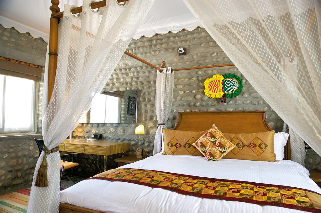 Anand@TheSatluj has an organic vegetable garden, offers a glimpse of rural life, and has cottages made of natural materials. There is a choice of two-bedroom and one-bedroom cottages. The facilities include in-room tea/coffee arrangements, hot/cold water, air conditioning and an electronic safe. There is a polo lounge to witness games and relax in. Arrangements can be made for bhangra and gidda dance training traditional martial arts sessions farming, cow milking, vegetable growing and organic farming demonstrations trekking nature walks and other spiritual tours.