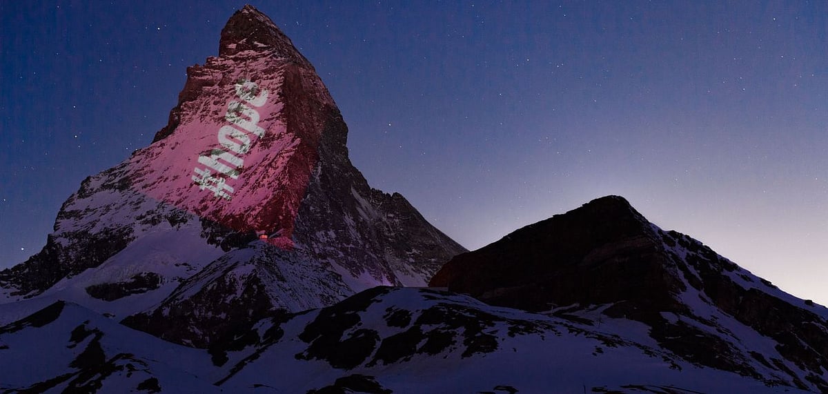 I lived for five weeks below Matterhorn Mountain in Zermatt, where I projected the flags of nations heavily affected by COVID-19. This also included the Indian flag, which was 1.6 km high and 800 meters wide.
