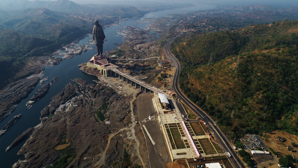 The state government of Gujarat is building a 3.5km long highway that will connect the statue to Kevadia town and also a 1049.8ft long bridge connecting Sadhu Bet Island to the mainland.