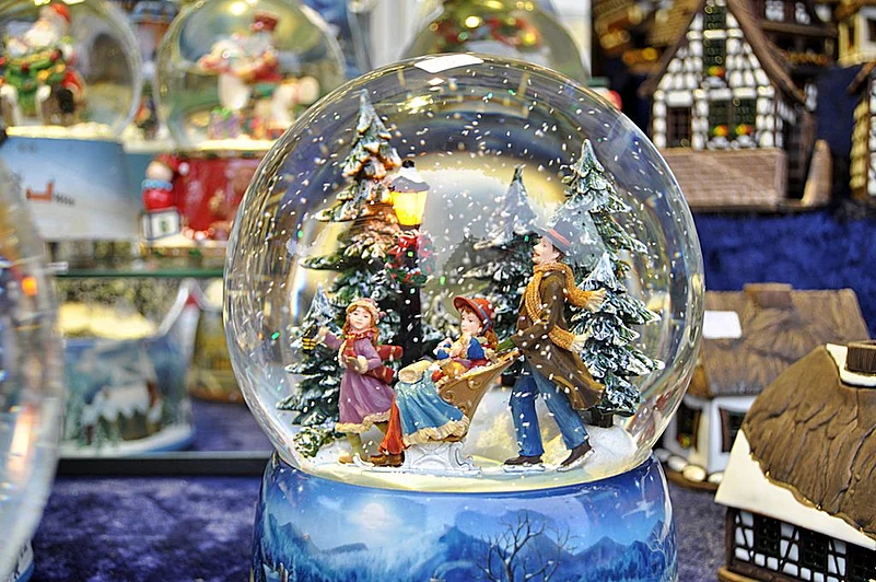 The aroma from food stalls tempted me to try their traditional sausages. I took a while to decide between currywurst (fried, spiced and sauced pork sausages) or bratwurst (simple German pork sausages). Armed with a currywurst and dunkle trinkschokolade (dark hot chocolate), I made my way to a shelter joining a crowd of local Germans. &lsquoProst&rsquo we said in chorus and immersed in the Christmas fervour.
