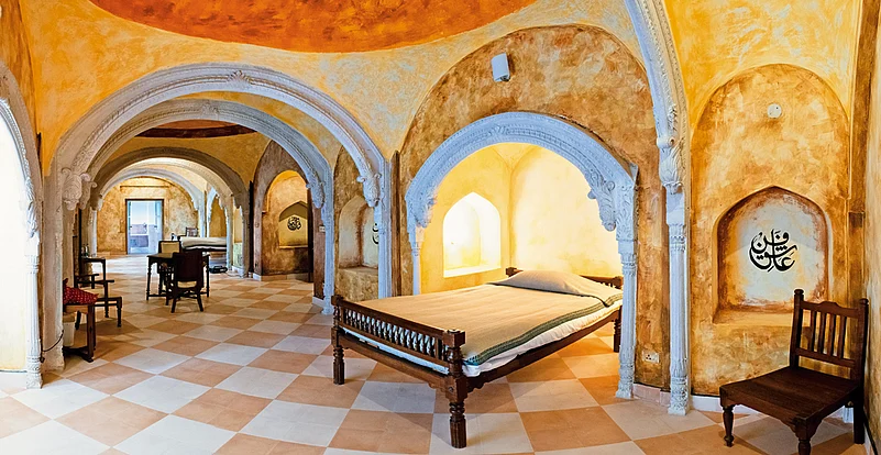 As if all this weren&rsquot enough, the Tijara experience has been enriched immeasurably by the introduction of art into the equation. Each of the rooms has been decorated by an artist, architect, photographer or designer featuring original artwork as well as reproductions, and is named after them. (I stayed in Laila Mahal, with its private octagonal turret room as a bonus, and loved Laila Tyabji&rsquos inspired selection of textiles including the intricate kalamkari fabric hung above the beds.) Some have simply contributed the art, after which the creative minds at Neemrana swung into action and conceived the interiors around it some have, quite simply, poured their souls into it. Shukla-ji was nice enough to show me several of the rooms. The experience left me stunned.